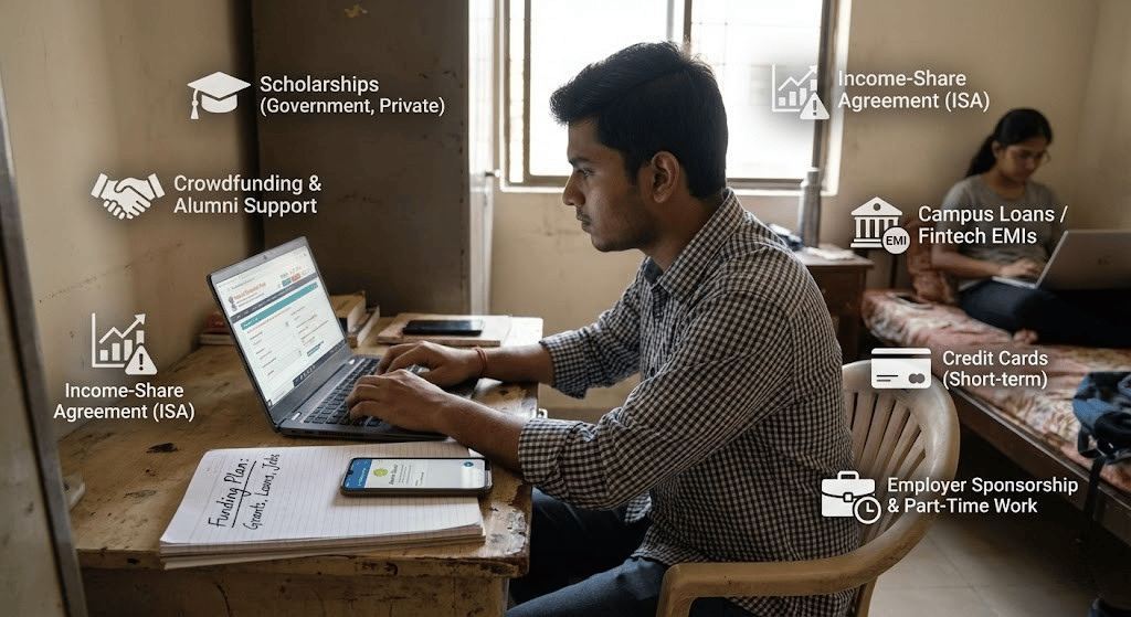 Campus loans/EMIs: Occasionally, institutions collaborate with lenders or edtech platforms to offer fee-payment EMIs or interest-free short-term repayment options.