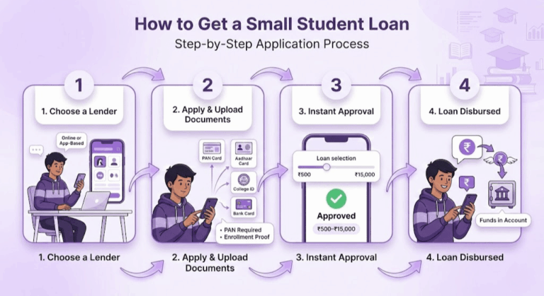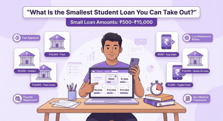 Various small student loan options are available to students in India. There are many options if you want a small loan to pay for study materials, college fees, or for immediate needs. From traditional education loans provided by banks like HDFC, Tata Capital, and Bank of Baroda to digital lending platforms like StuCred and InstaPocketLoan, students can obtain instant loans ranging from ₹500 to ₹15,000 or more. Students need to consider what type of loan best suits their needs, its eligibility criteria, and how much they would need to borrow for their education (personal loans, education loans, or unsecured loans).