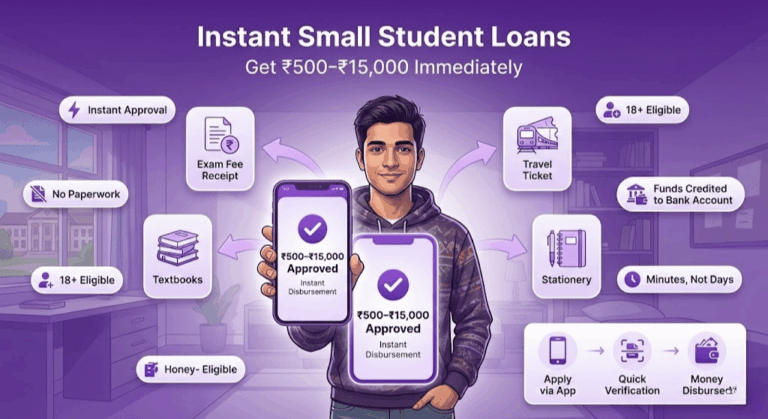 For emergencies, students sometimes require quick access to small loans to pay a fee, purchase study materials, or cover an unexpected expense. Luckily, a few digital lending platforms and banks offer instant loans of ₹500-₹15,000 with instant approval and disbursement.