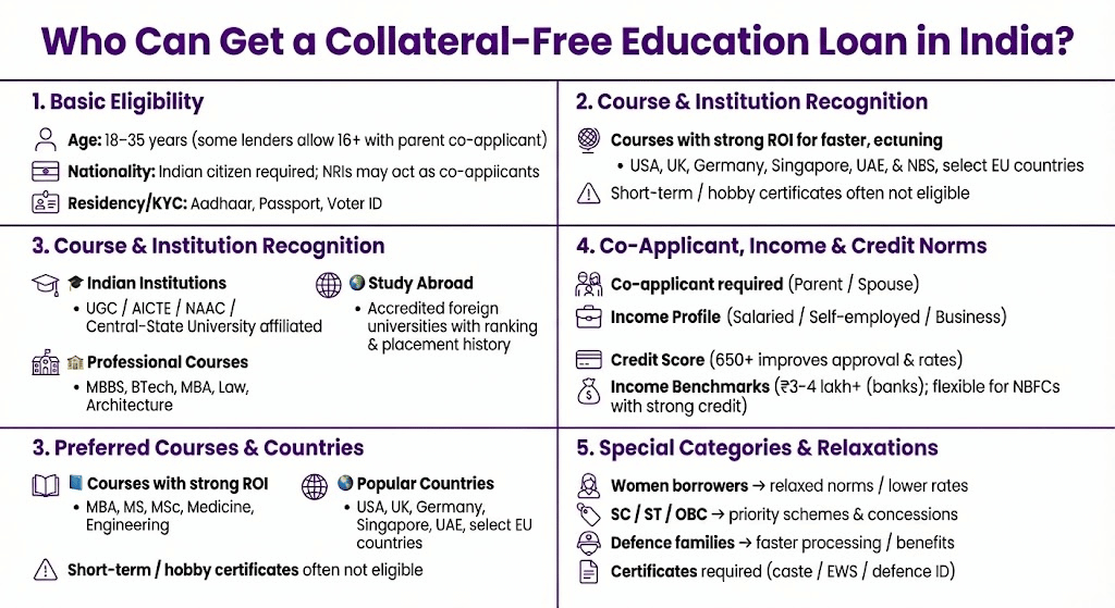 Eligibility Criteria — Who Can Get a Collateral-Free Education Loan in India?