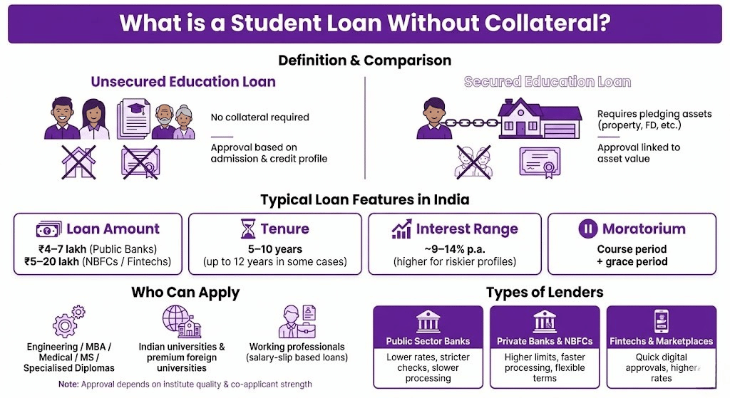 Student Loan Without Collateral in India — Complete Guide